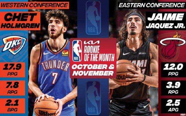 雷霆新秀霍姆格伦荣膺月最佳新秀